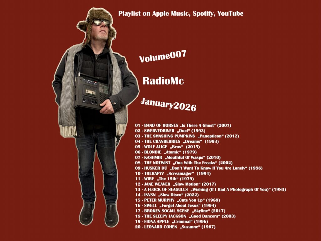 Berlin, 11.11.2025… Der November-RadioMc startet mal wieder mit einem dramatischen Intro… so viel Zeit muss sein… nach Babygeschrei, Sirenen und einer Explosion setzt dann ein Klavier ein, und bald kommt es einem vertraut vor… Roger Hodgson… da muss man ein gewisses Alter haben, um den Namen sofort zuordnen zu können. Wenn er dann aber anfängt zu singen, wird sicher auch jeder – na ja – fünfte Hörer der neueren Generationen sagen: Aha! Supertramp! 1982 erschien das letzte „richtige“ Album der Band, die in den 1970er-Jahren eine der erfolgreichsten Bands der Welt war. Zwei Jahre später erschien das erste Soloalbum von Roger Hodgson – und es war besser als viele Supertramp-Alben und viel besser als alles, was von Band und Soloalben noch folgen sollte. Hodgson spielte jedes Instrument selbst ein (was nicht immer ein Qualitätsmerkmal sein muss – diesmal passts), und „Had A Dream (Sleeping With The Enemy)“ war auch beim damals 16-jährigen McLarsi ein Hit… allerdings in der kastrierten Single-Version… hier gibt es natürlich die kompletten achteinhalb Minuten. Gut zehn Jahre später erschien das Album „Tomorrow The Green Grass“ der Amerikaner The Jayhawks, der Band um die Bandleader Gary Louris und Mark Olson. Im Song „I’d Run Away“ stecken auch ein paar Supertramp-Moods drin; der Song bietet opulenten Pop mit Orchester und Americana… Country war immer die Wurzel dieser Band, die es heute noch immer gibt – nur ohne Mark Olson. Sonniger Pop kommt auch mit Song Nummer 3 vorbei… The Thrills aus Irland überraschten 2003 mit Folkrock inclusive Westcoast-Feeling… nee, nicht Galway, eher San Francisco… was aber auch kein Wunder war, entstand „So Much For The City“ doch in Kalifornien. „Big Sur“ war der größte Hit der Platte und auch heute noch ein gern gehörtes Stück dieser Band, die leider nach nur drei guten Alben 2007 wieder von der Bildfläche verschwand. Apropos Westcoast… The War On Drugs können das auch sehr gut – mit etwas mehr Breitwand-Sound… gut geeignet für sommerliche Ausfahrten mit einem Cabrio der Wahl… im Laufe seiner fünf Minuten steigert sich der Song in ungeahnte Höhen der Euphorie… radiofreundlicher AOR-Mainstream der hochwertigsten Art, wenn ihr mich fragt. Nach so viel Wohlklang kann ein wenig Punk-Attitüde nicht schaden… das übernimmt die Band Magnapop, die Mitte der 1990er-Jahre einige Erfolge verzeichnen konnte. Ihr größter Hit war „Open The Door“, mein liebstes Album der Band um Linda Hopper war aber „Hot Boxing“ von 1994 – produziert von Bob Mould, was man auch hört… hier mit „Piece Of Cake“. Fast 30 Jahre später erschien dann der nächste Song: „The Last Summer“ von Oceanator hätte gut und gerne auch gleichzeitig mit Magnapop erscheinen können… etwas slacker-ischer Grunge mit einem der besten Gitarrensoli der letzten Jahre, eingespielt von Chefin, Sängerin und eben Gitarristin Elise Okusami, dem einzig festen Mitglied der Band. Der Song war einer meiner liebsten Songs des Jahres 2022. Ich würde der Amerikanerin sehr einen größeren internationalen Durchbruch gönnen. Einen solchen hatte die Band Carnival Season (helau… heute ist zufällig der 11.11.) leider nie, da sie mit ihrem Hochdruck-Power-Pop zur falschen Zeit an der falschen Stelle waren. Erfolgreich waren damals die, die aus Minneapolis (Hüsker Dü, The Replacements), Boston (Pixies) oder Seattle (alle Grunge-Heinis) kamen… Alabama war seinerzeit nicht angesagt… schade… „Waiting For No One“ war ein großartiges Album, und „Black Velvet Elvis“ wäre in einer gerechten Welt zumindest ein Kulthit… egal… Hauptsache, ich kenne ihn – und teile ihn hiermit gerne. Deutlich erfolgreicher waren natürlich Nirvana – und auch Dave Grohls Nachfolgeband Foo Fighters… Quatsch… sie sind es noch immer und zählen zu den größten Rock-Acts der Gegenwart. Und so ganz verschließen konnte ich mich denen auch nie… auch wenn ich kein Mega-Fanboy bin. „Long Road To Ruin“ ist einer meiner Favoriten der Million-Seller. Große Vorbilder für Nirvana waren die Pixies… diese Band war hier schon vertreten, und erstmal soll es keine Wiederholungen geben. Also dann an dieser Stelle ein Stück vom besten Pixies-Album, das es nie gab – denn es war das zweite Soloalbum von deren Sänger Black Francis, der sich seinerzeit in Frank Black umbenannte. „Teenager Of The Year“ war 1994, durchaus eines meiner besseren Jahre, mein Album des Jahres – und das mit großem Abstand… 22 Songs in einer Stunde… das bekamen damals fast nur noch They Might Be Giants hin. „White Noise Maker“ flirtet etwas mit New-Wave-Klängen. Für eine Sampler-Serie, die etwas mit Radio zu tun hat, ist der kommende Song eine Pflichtveranstaltung: „The Spirit Of Radio“ der kanadischen Progrocker Rush – ist quasi die Quintessenz von Rockmusik im Radio… ein Song wie ein Monument: Rock, New Wave und Reggae… auch nach 45 Jahren nicht totzukriegen… nicht auszudenken, wenn der Sänger noch eine gescheite Stimme hätte… aber irgendwas ist immer… Elektrische Gitarren beherrschen bekanntlich den Heavy Metal – deren bekannteste Vertreter Portugals sind Moonspell. Sie hatten in den 1990ern einen Hit mit „Opium“, um den geht es aber in Lied Nummer 11 nicht; es ist eher eine Ballade… „Scorpion Flower“ stammt vom 2008er-Album „Night Eternal“ und wurde gemeinsam mit Anneke van Giersbergen, der ehemaligen Sängerin der niederländischen Metal-Band The Gathering, aufgenommen… der Song hat durchaus etwas Gothic-Sound dabei… Vom Mond zur „Midnight Sun“ geht es im nächsten Stück – es kommt von Nilüfer Yanya und ist ihr bislang größter Hit. Im Jahr 2022 entdeckte ich die junge Londonerin damit auch, und seitdem ist sie ständiger Gast in der choice-Serie, also der anderen Sampler-Serie von mir, in der nur Neues geboten wird. Besonders liebe ich an dem Song, wenn die kratzigen Akustikgitar