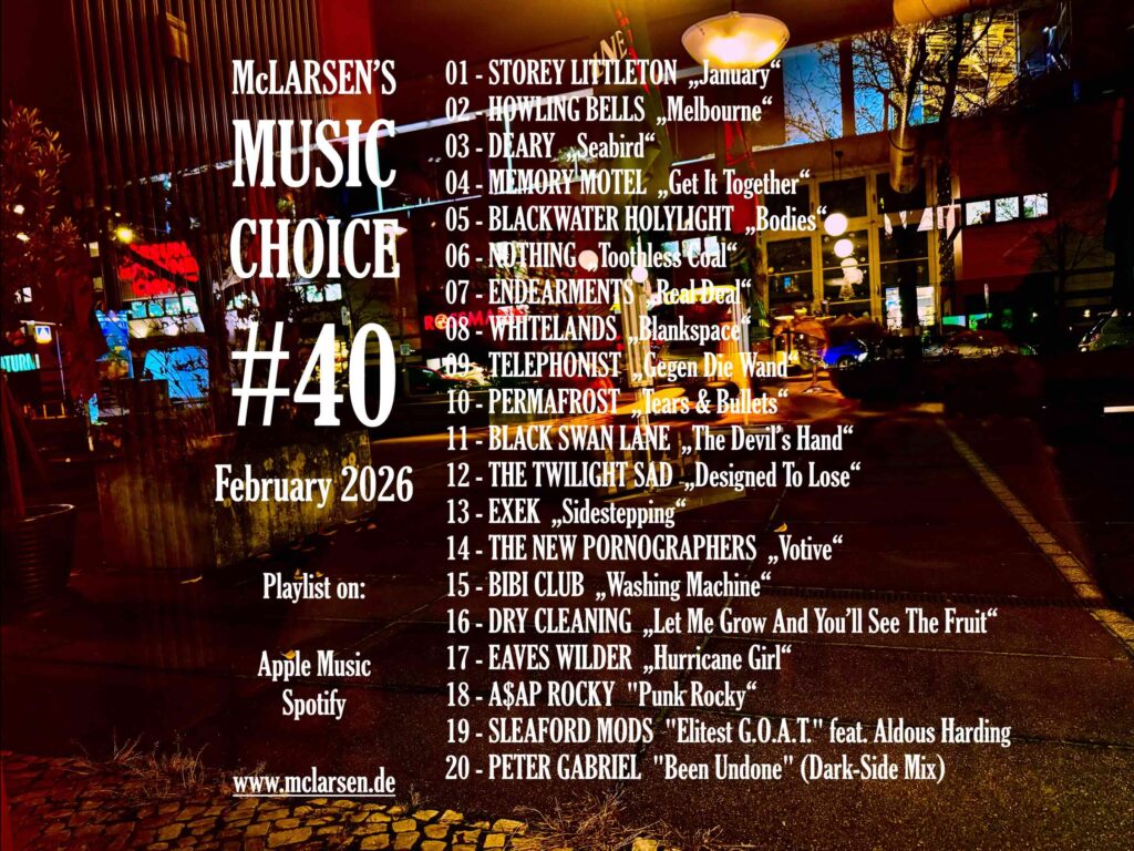 Das war die erste Ausgabe von McLarsen’s Music Choice im Jahre 2026… es war die 5-jährige Jubiläumsausgabe in neuem Look… ich hoffe, sie konnte gefallen… choice#41 erscheint Ende Februar.