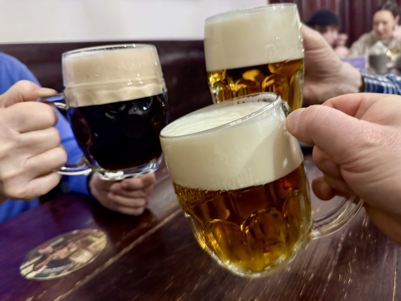 Nachdem wir nun Gotik, Romanik und Barock studiert hatten, ging es erstmal zurück in die Unterkunft. Eigentlich war das noch etwas zu früh, aber da wir ja alle auch nicht mehr die Jüngsten sind, war etwas Ruhe auch nicht verkehrt. Abends gingen wir dann in das Restaurant U Mariánského obrazu direkt um die Ecke und genossen das gute tschechische Essen und das ebenso gute Bier… und das alles zu Preisen, wie wir sie in Deutschland schon lange nicht mehr kennen. Später sollten es für mich noch ein paar Guinness werden, und ich besuchte den Maverick’s Pub auf der anderen Seite der Hauptstraße Seifertova. Es gab Guinness im 0,4-l-Glas, der Laden war sehr klein und befüllt mit wiederum vielen grün gekleideten Menschen, die Englisch sprachen und gefühlt die halbe Stadt gekapert hatten. St. Patrick’s Day war bereits vorbei, aber es gab für Irland noch mindestens ein Qualifikationsspiel für die Fußball-Weltmeisterschaft zu absolvieren… und zwar in Prag gegen Tschechien. Halb Irland muss dann Urlaub genommen haben und nach Prag gereist sein… ist ja auch eine prima Konstellation: die irischen Meister der Feierlichkeit und das Land des billigen Bieres (nicht zu verwechseln mit Billigbier… auf keinen Fall, aber ein normaler halber Liter kostet durchschnittlich 2–3 Euro).