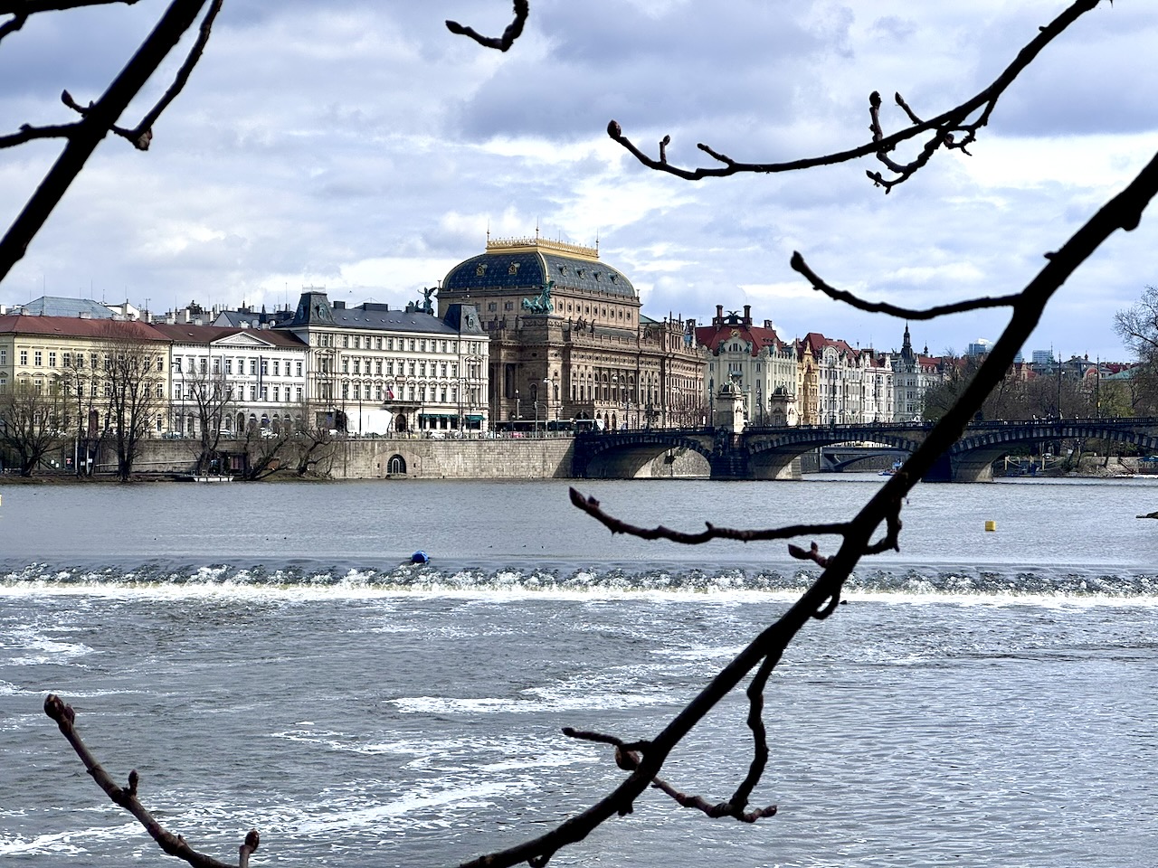 Danach waren wir kurz etwas unentschlossen, wie es weitergehen sollte, aber es kam die Idee auf, eine Bootsfahrt auf der Moldau zu machen… also wieder zurück zum Fluss und auf dem letzten Drücker Tickets für eine Lunch-Fahrt gebucht und eine Minute vor Ablegen den Kahn betreten. Als Begrüßung gab es ein Glas Becherovka, den tschechischen Nationalschnaps. Wir hatten Fensterplätze und mit der Aktion zwei Fliegen mit einer Klappe geschlagen: wir konnten im Warmen relaxen und nebenbei von einem ordentlichen Buffet Mittag essen. Dabei zog Prag an den Ufern der Moldau an uns vorbei… wenn wir nicht gerade in einer Schleuse standen. Diese zwei Stunden waren sehr angenehm… danach bummelten wir auf der Insel Kampa, die Teil der Kleinseite ist und wieder ganz andere, angenehm schlichte Akzente dieser so vielseitigen Stadt zeigte. Das Wetter war kalt, aber gut für Fotos… so bummelten wir langsam über die Most Legií, Brücke der Legionen auf Deutsch… und stiegen in die Tram, die uns zurück nach Žižkov brachte. Für das Abendessen genügten nach dem üppigen Buffet ein paar Sachen vom Lidl um die Ecke.